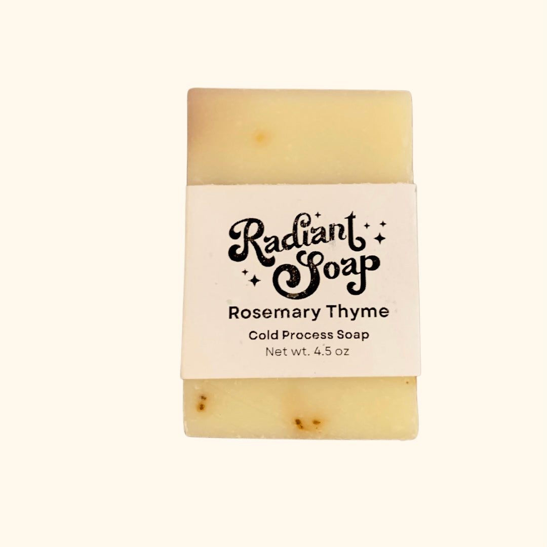Rosemary Thyme Cold Process Soap is a refreshing combination of Rosemary and Thyme. It's a combination of cool and calm. Add this to your cart today!
